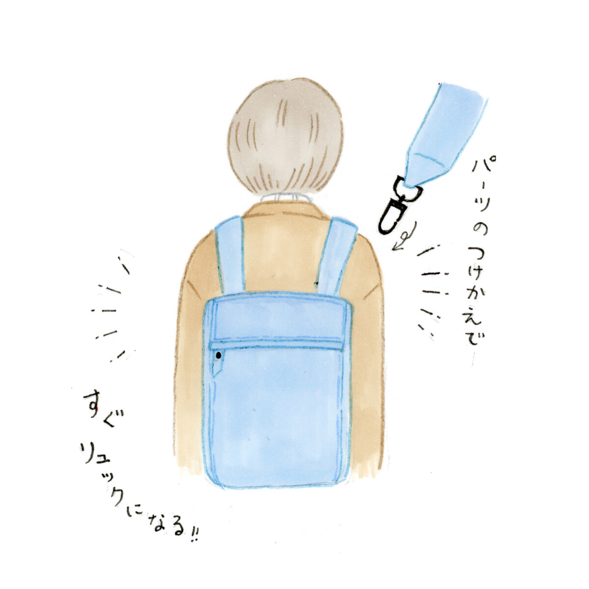付属のパーツをつけかえれば一瞬でリュックになるのもとても便利。